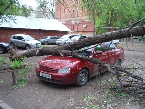 На пересечении Б. Казачьей и ул. Железнодорожной около 2-х часов назад дерево на 4 припаркованных автомобиля: «Деу Матиз», «Рено Логан», «ВАЗ-2107» и «Хендай».