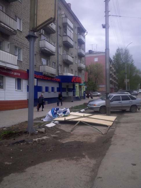 На пересечении улиц Аэропорт и Новосоколовогорская на землю рухнул рекламный баннер.
