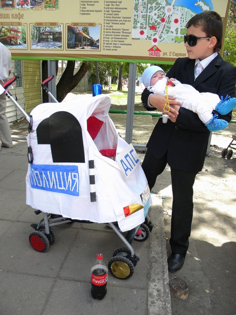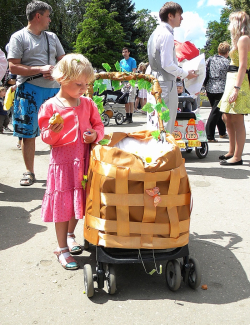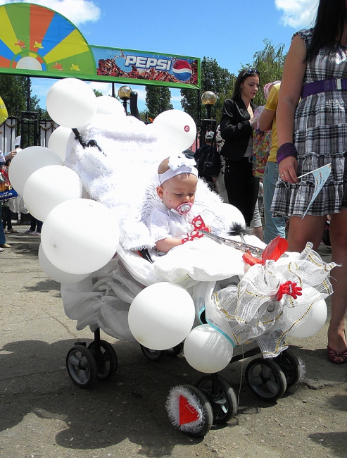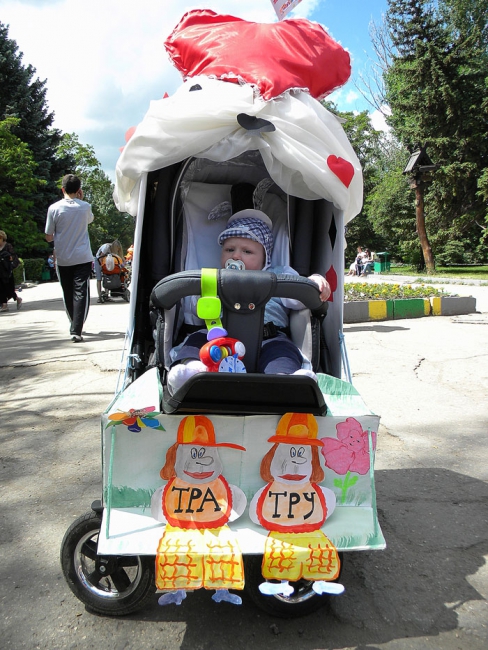В конкурсе участвовали коляски, выполненные в виде патрульного автомобиля ДПС, ковра-самолета, логова древнего человека, пиратского корабля, каравана с верблюдами и другие. Родители маленьких героев продемонстрировали творчество и изобретательность, изготовив настоящие шедевры, не похожие друг на друга. Сразу после регистрации участники мероприятия устроили показательный заезд, от главных ворот до сектора с аттракционами, где их уже ждали конкурсы, подарки и памятные призы.