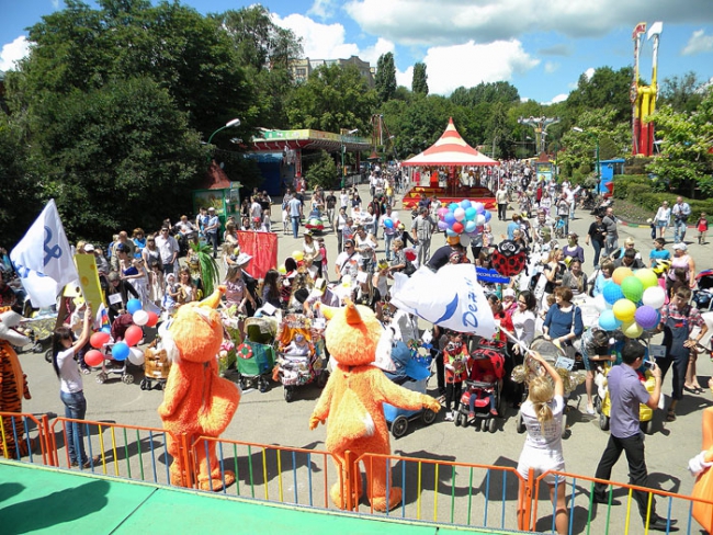 Вчера днем в городском парке имени Горького в комплексе «Лукоморье» прошел первый праздничный парад колясок, посвященный Дню защиты детей. Организаторы акции объединили более 50 участников, пожелавших зарегистрироваться и посоревноваться за самое оригинальное средство передвижения их детей.