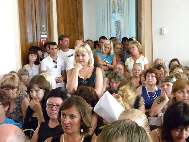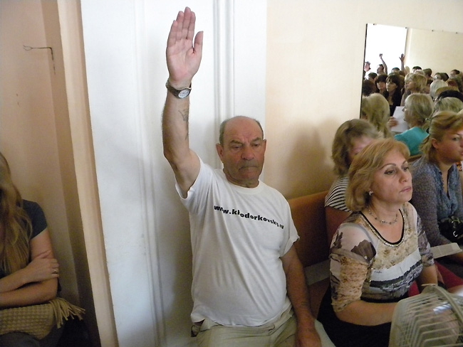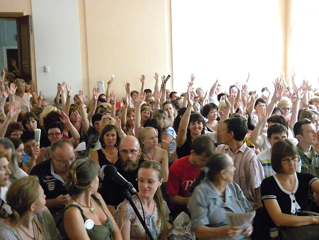 «Четвертая власть» публикует два видео, снятых на сегодняшних слушаниях. В каждом из них есть по эпизоду, когда противостояние перешло к насильственным действиям. В первом случае – «битва за микрофон» с участием Журбина и вмешательством полиции, во-вторых, «схватка» двух молодых педагогов и общественницы Лидии Виненко.
