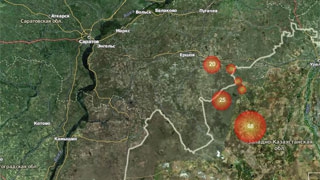Кроме того, имеется локация из 6 точек в Озинском районе, где выгорело 6,6 кв. км. Помимо прочего, рядом с границей с регионом на территории республики Казахстан также обнаружен ряд термоточек в количестве от 4-6 до 45 штук (выгорело более 100 кв. км).