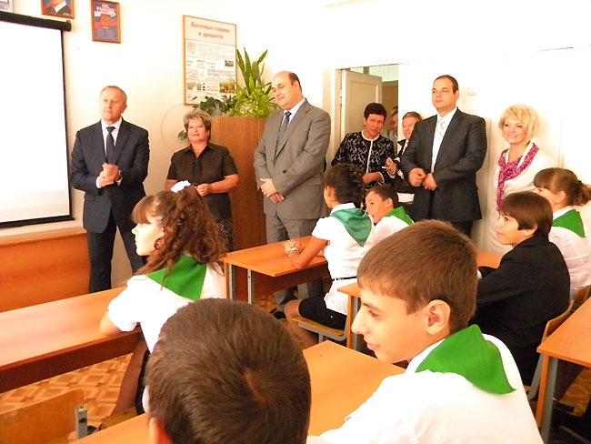 Также в ходе праздничных мероприятий глава региона вручил директору школы сертификат на компьютеры и новую технику для столовой, после чего осмотрел школьные классы и пообщался с учениками.