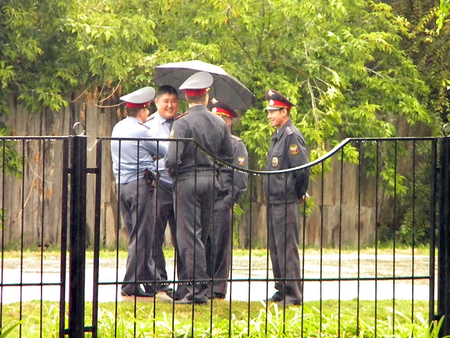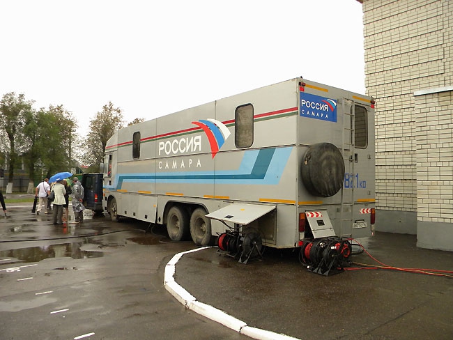 Спецслужбы запрещают журналистам пользоваться школьными туалетами. Специально для работников СМИ на улице установлены два био-туалета.