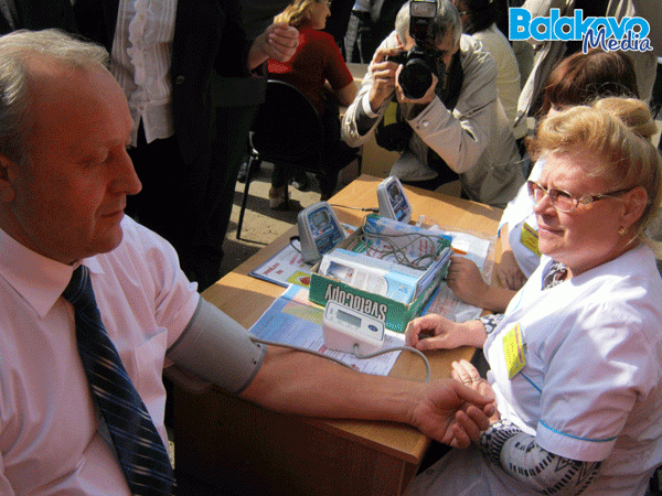 В эти выходные в рамках празднования юбилея города Балакова на площади перед дворцом культуры проходила акция «Островок здоровья». Врачи разных специализаций общались с населением и давали полезные советы. Все желающие могли пройти несколько несложных обследований прямо на улице. Посетил эту акцию и губернатор Саратовской области Валерий Радаев, сообщает BalakovoMedia.ru.