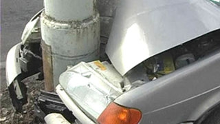 «ВАЗ» врезался в столб у больницы. Водитель сбежал, пассажир госпитализирован