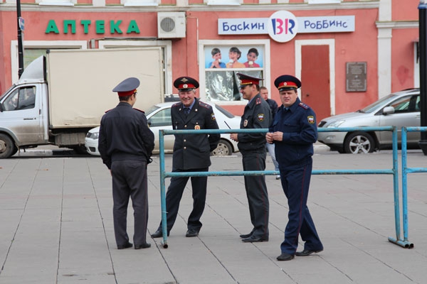 Ровно в полдень через дорогу от консерватории под флагами КПРФ выстроились сотни неравнодушных граждан, решивших посетить оппозиционное мероприятие. В свою очередь, полицейские, охранявшие спокойствие митингующих, заблаговременно огородили территорию у памятника металлическими парапетами. Помимо этого, каждого вновь пришедшего стражи порядка проверяли металлоискателями.