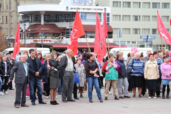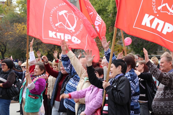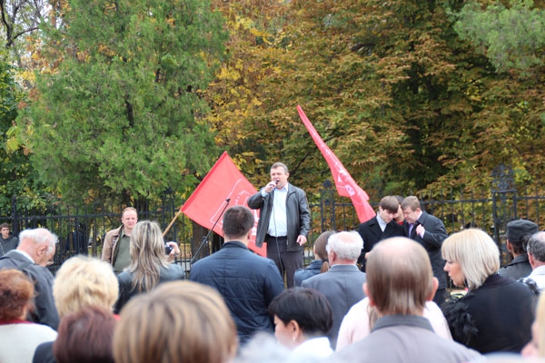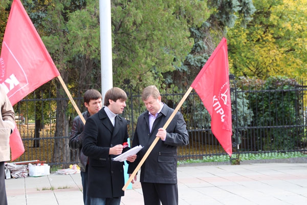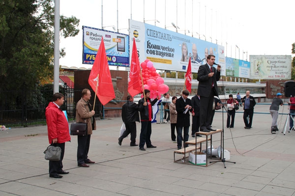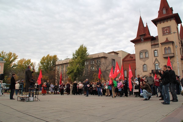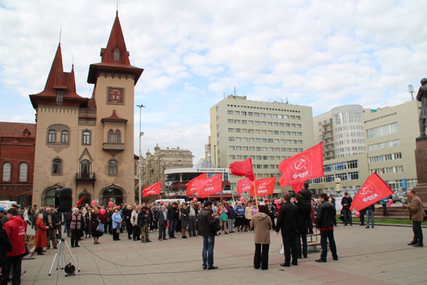 Сегодня в центре Саратова у памятника Чернышевскому прошел митинг-перфоманс, организованный Коммунистической партией РФ и кандидатом в депутаты в региональный парламент Вячеславом Мальцевым.