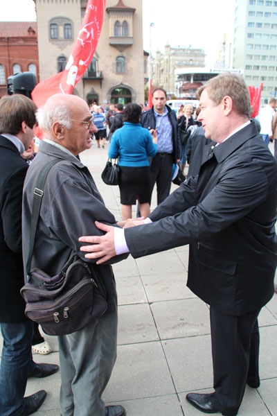 Немного опоздав на начало протестной акции, главный герой перфоманса Вячеслав Мальцев поднялся к микрофону, встав на небольшую трибуну. В этот момент толпа принялась аплодировать, и выкрикивать лестные фразы в адрес оратора. В самом начале, Вячеслав Вячеславович передал привет собравшимся от Игоря Кармишина, который несколько месяцев назад получил политическое убежище в Швеции. По его словам, сейчас опальный оппозиционер активно изучает иностранный язык и занимается своим здоровьем.