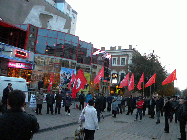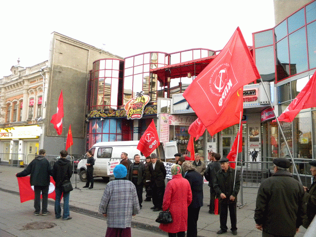 Протестная акция стартовала около 17.00 у кинотеатра «Пионер» на проспекте Кирова. Немногочисленная группа граждан с флагами КПРФ и плакатами развернулась у развлекательного учреждения. Также в акции приняло участие два представителя партии «Другая Россия».
