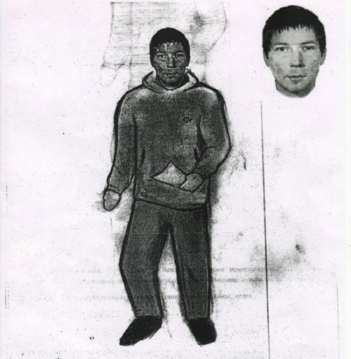 Следствие располагает фотороботом подозреваемого лица, составленным одним из свидетелей. Следователи просят всех обратить внимание на фотоизображение и оказать содействие в установлении личности преступника и его местонахождения. Лицу, информация которого поможет следствию в установлении личности преступника, будет выплачена денежная сумма в размере 1 миллион рублей.
