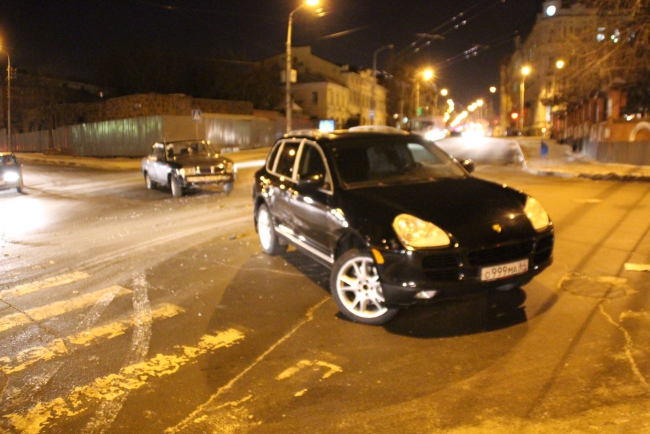 Вчера примерно в 19:00 на пересечении улиц Московской и Лермонтова Волжского района Саратова столкнулись «Porsche Cayenne» и «Волга».