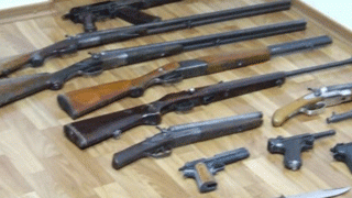 Оперативники изъяли: 185 патронов калибра 5.6 мм, 7 банок пороха, 9 спортивных револьверов, стреляющую ручку, 2 незарегистрированных охотничьих ружья 16 калибра и патроны к ним.