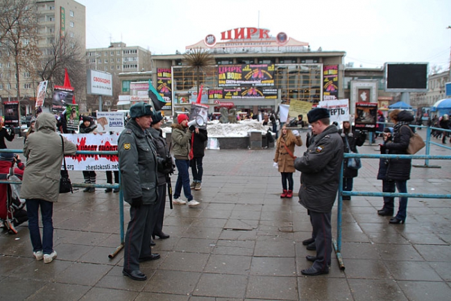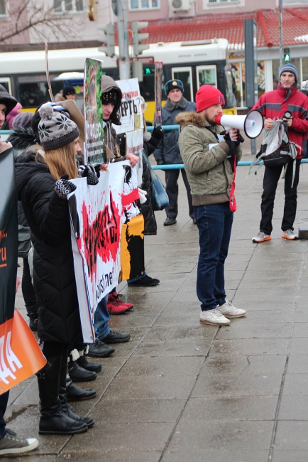 Дойдя до цирка, где молодых оппозиционеров ждал усиленный наряд полиции, анархисты выстроились напротив здания крытого рынка и там провели пикет. Кульминацией акции стало выступление одного из организаторов мероприятия Олега Петрова, по словам которого саратовские эко-анархисты добиваются свободы для всех, в том числе и для животных.