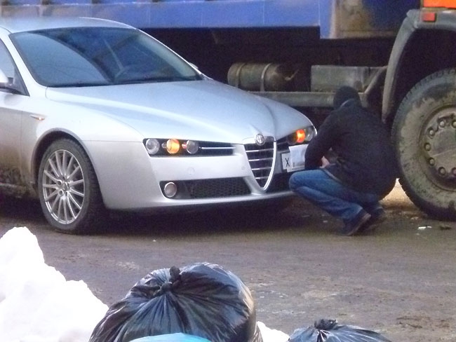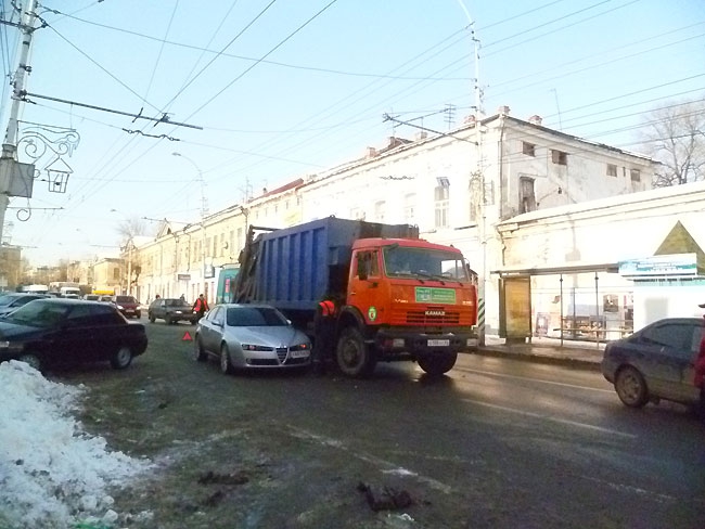 На Московской столкнулись мусоровоз и «Альфа Ромео»