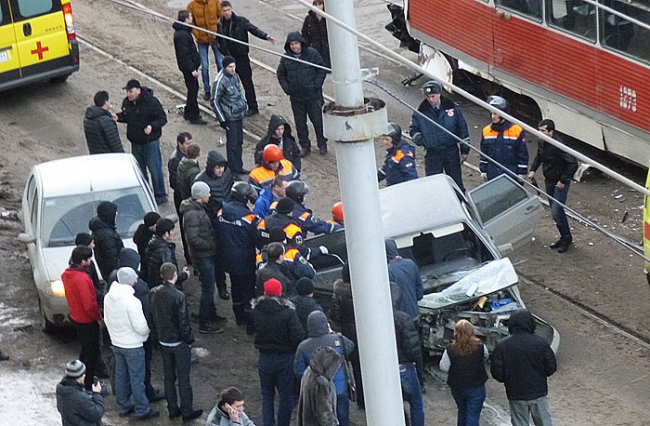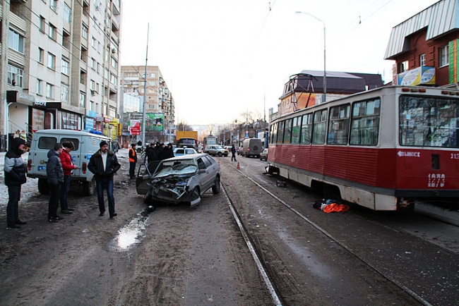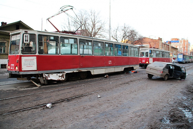 По предварительной версии двигаясь от Чапаева в сторону Вольской водитель «ВАЗ-2114» не справился с управлением, выехал на полосу встречного движения и врезался в трамвай №11.