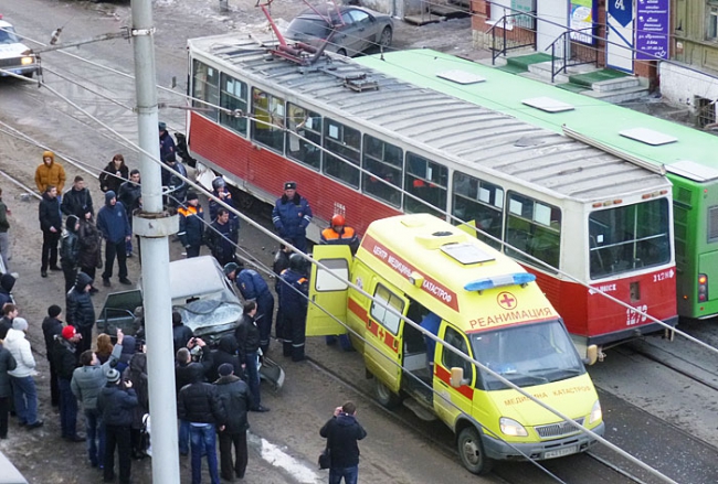 Удар был такой силы, что у легковушки раскололся двигатель. Вероятнее всего «четырнадцатая» восстановлению не подлежит. Трамвай же не получил серьезного урона.