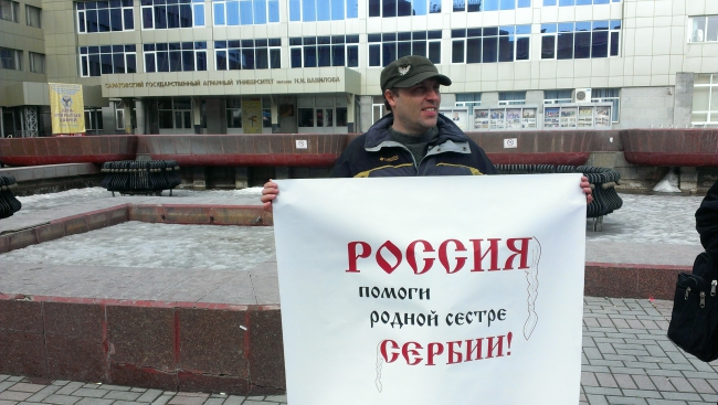 Вчера в Саратове состоялся пикет, посвященный началу войны в Югославии. Одним из требований акции стала выдача российских паспортов всем косовским сербам.