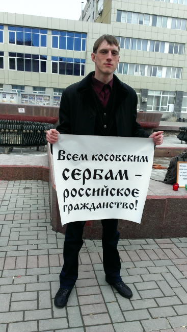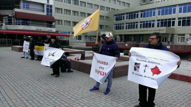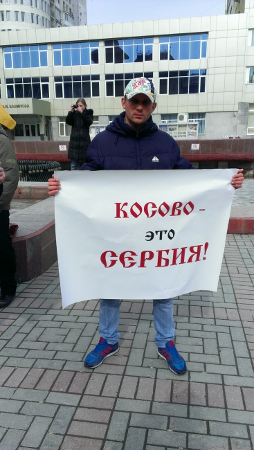 Мероприятий прошло с 14.00 до 14.40 напротив городской консерватории. Участники пикета, всего около десятка человек, встали с плакатами гласящими: «Всем косовским сербам – российское гражданство», «Помним, скорбим… не забудем, не отдадим», «Россия помоги родной сестре Сербии!».