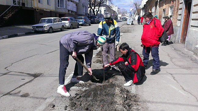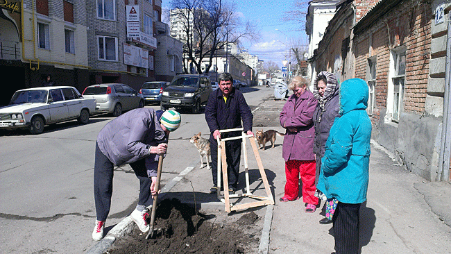 В минувшую субботу жители ул. Первомайская Саратова вместе с общественниками, всего 6 человек, провели на своей улице «субботник». В рамках него они высадили саженцы на месте ранее спиленных деревьев.