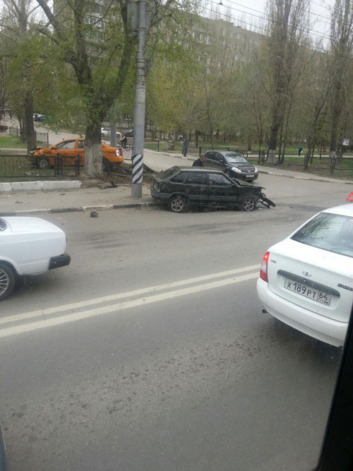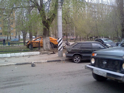 По сообщениям очевидцев, автомобиль «Лифан» с раскраской такси выехал на газон после столкновения с «ВАЗ-2114». При этом таксист заехал полностью на зеленую часть, снеся ограждение. Информации о пострадавших пока не имеется.
