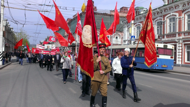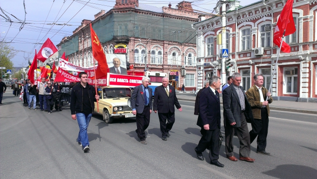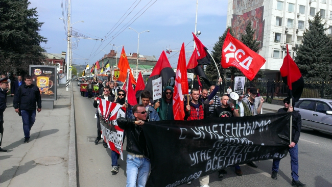 В минувшее воскресенье состоялись шествие и митинг, организованные представителями левых движений (в том числе «Союзом советских офицеров» «ССО»), оппозиционных к КПРФ. Несмотря на свою малочисленность, акция стала самой резонансной среди первомайских массовых мероприятий.