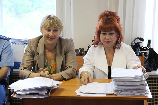 Для удобства допроса свидетеля, ведущего специалиста отдела документооборота мэрии Ольги Чурилиной, прокурор попросил продемонстрировать гражданке документы входящие в один из томов уголовного дела. Так, стоя перед председательствующей Еленой Ледневой, гособвинитель и адвокат обвиняемого Светлана Писакина по очереди задавали вопросы сотруднице мэрии.