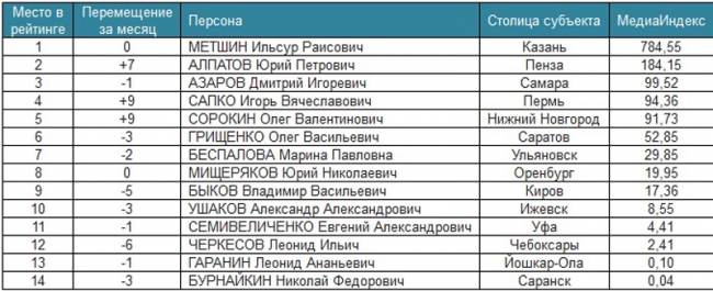 «Медиалогия» подготовила медиарейтинг первых лиц столиц субъектов ПФО за май. Глава Саратова Олег Грищенко оказался в списке на 6 месте, опустившись на 3 позиции вниз. При этом глава горадминистрации Алексей Прокопенко в своем рейтинге, напротив, поднялся на 5 строчек вверх и занял 6 место.