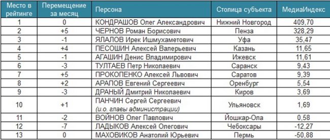 Лидерами медиарейтинга стали глава Нижнего Новгорода Олег Кондрашов и глава администрации Казани Ильсур Метшин.