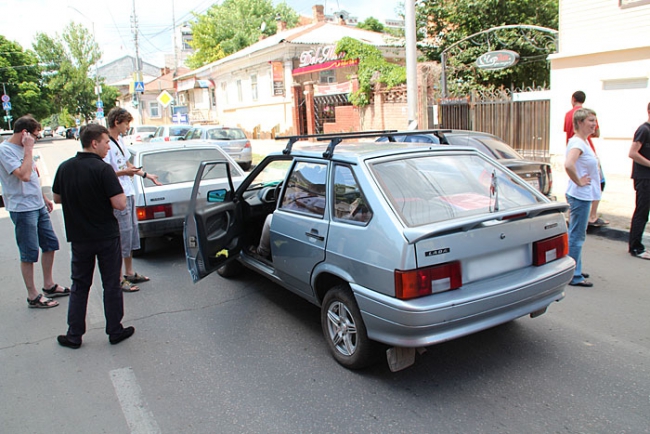 Около получаса назад, на улице Первомайской Саратова (между Соборной и Некрасова) произошло незначительное ДТП с участием двух машин. Сдавая назад чтобы въехать во двор, водитель «ВАЗ-2108» врезался в «ВАЗ-2114». При легком столкновении бамперами оба автомобиля получили незначительные царапины.