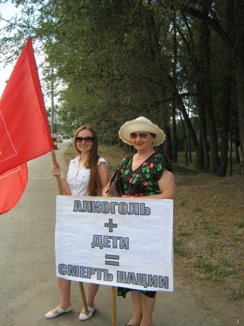 В ходе акции были продемонстрированы антиалкогольные лозунги: «Алкоголизация населения -геноцид страны», «Алкогольное лобби - убийство детей», «Производство алкоголя - под контроль государства», «Алкоголь + дети = смерть нации», «Пивная мода - уничтожение будущего России», «Пьяные родители - умственно отсталые дети».