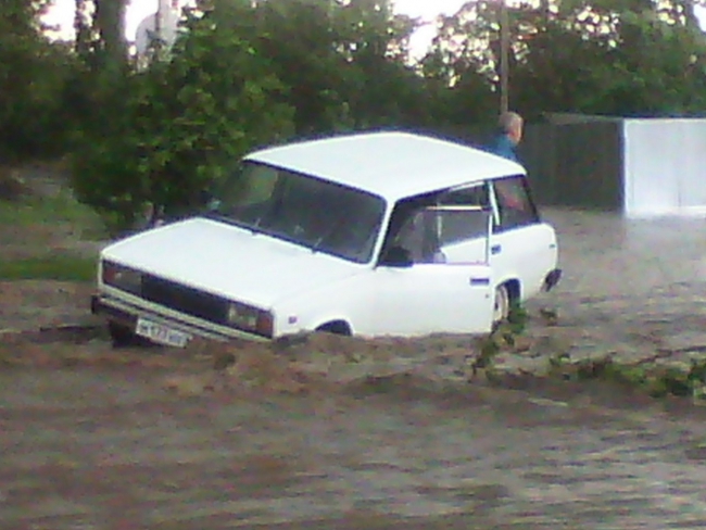 Помимо повреждений из-за града, автомобили страдают от размывов дорог. Например, на 6-м квартале в дорожную яму угодил «ВАЗ-2104», а в районе улицы Вишневой – «Лада Приора». Также имеется большая дорожная яма на проезжей части одной из улиц.