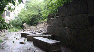 В Ленинском районе Саратова ливни размыли бетонную стену, а в Кировском - автостоянку.
