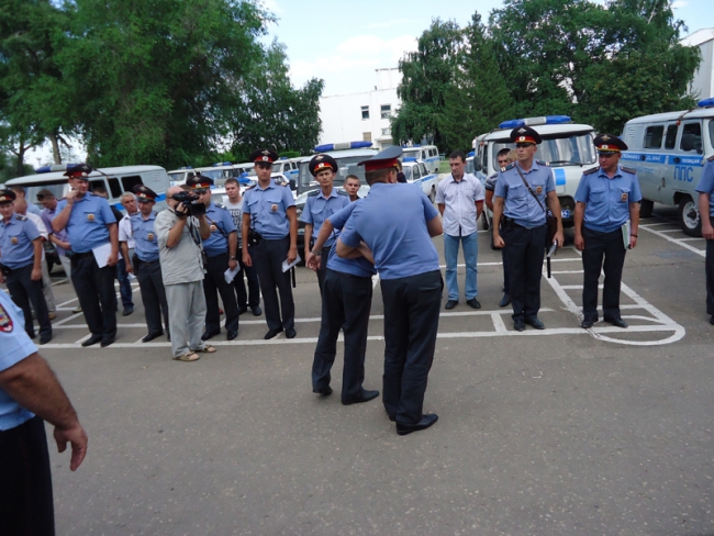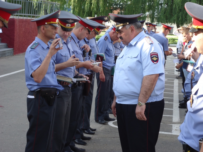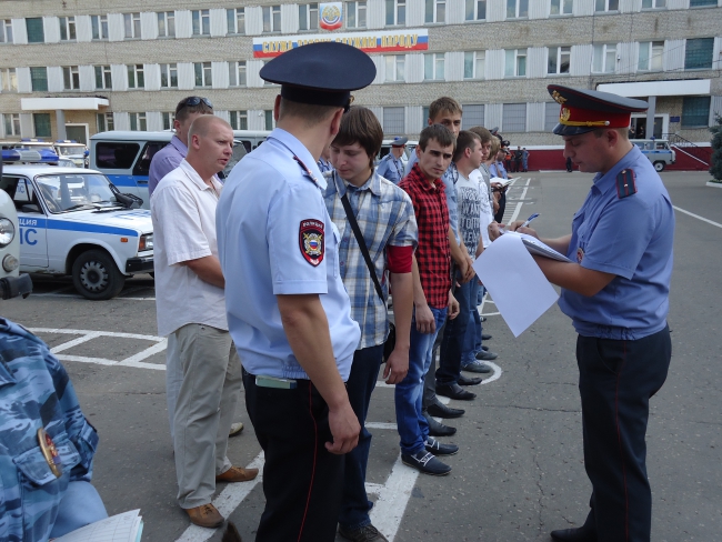 Напутственное слово дружинникам сказал командир полка ППС Виталий Синдянкин: «При досмотре молодежи соблюдать меры предосторожности. Вы должны встать так, чтобы в любой момент могли оказать помощь сотруднику, если на него нападут. Если будет невыполнение законных требований сотрудника полиции — вы должны будете подтвердить данный факт и, таким образом, стать свидетелями».