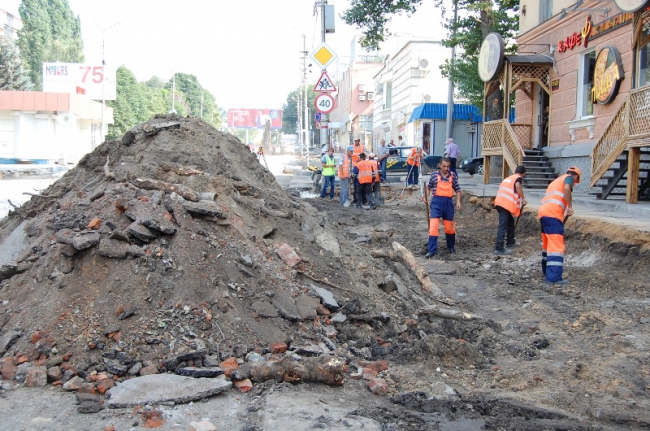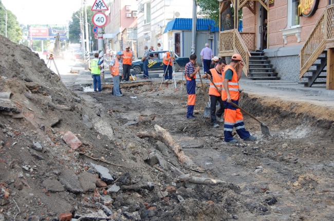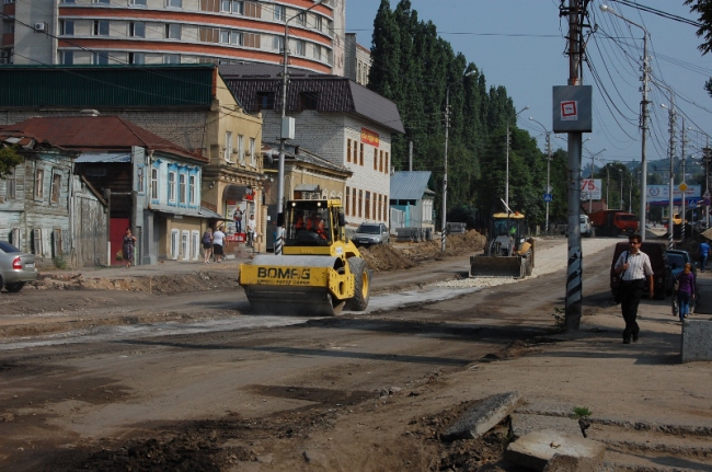 На улице Радищева ремонт только начался. Планируется восстановить ее на участке от Большой Горной до Московской - 720 метров. Здесь проезжая часть будет не только отремонтирована, но и расширена за счет демонтажа трамвайных путей.