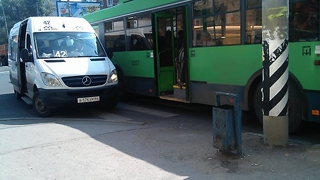 В редакцию «Четвертой власти» обратились читатели, возмущенные действиями водителей общественного транспорта. Маршрутные такси на перекрестке Московской и Чернышевского собирают пассажиров прямо на зебре, перекрывая пешеходный переход.