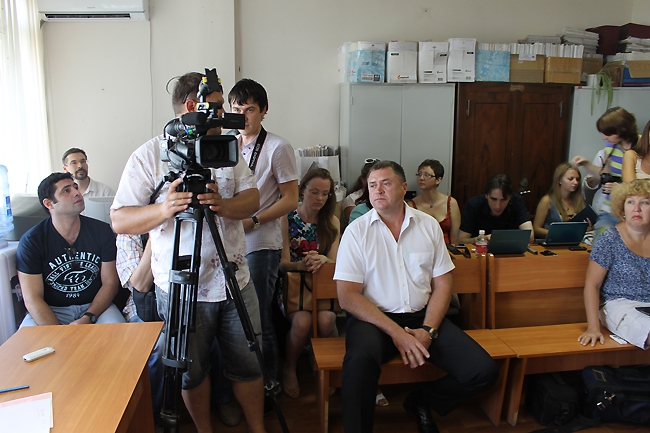 Сегодня должен состояться приговор по делу градоначальника Саратова Алексея Прокопенко. В ожидании судьи глава администрации в шутку предложил всем собравшимся после оглашения вердикта собраться на крыльце здания арбитражного суда и сделать групповое фото. В тесном помещении собралось уже более 30-ти человек.
