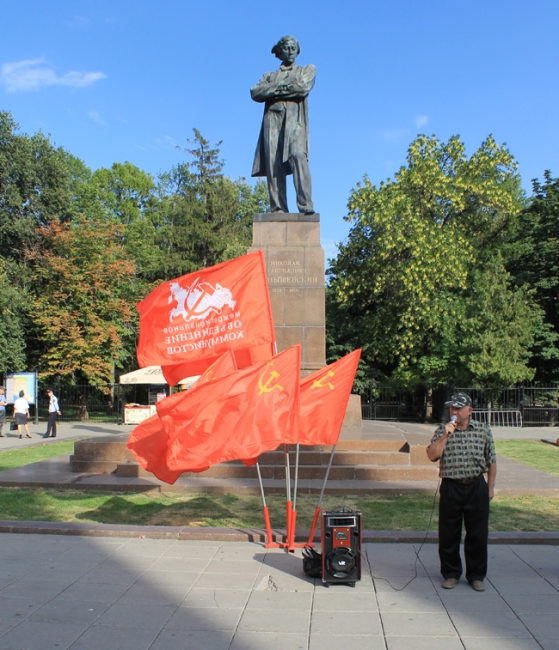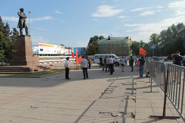 В эти минуты в Саратове на улице Радищева возле памятника Чернышевскому проходит санкционированный митинг альтернативного горкома коммунистов (он составлен из политактивистов, покинувших реготделение КПРФ) в поддержку жителей Пугачева. Мероприятие связано с убийством Руслана Маржанова в начале июля. На акции присутствует около 30 человек.