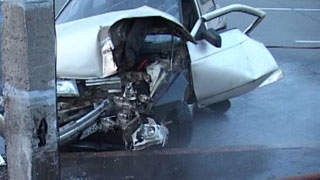 «Приору» на мокрой дороге занесло в столб. Двое в больнице