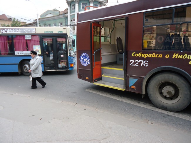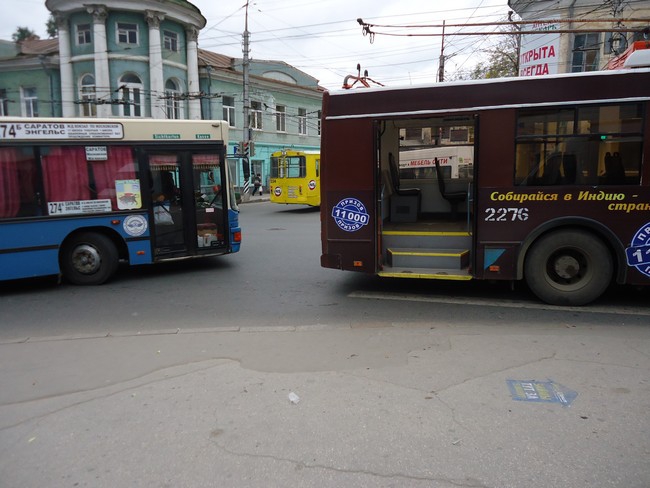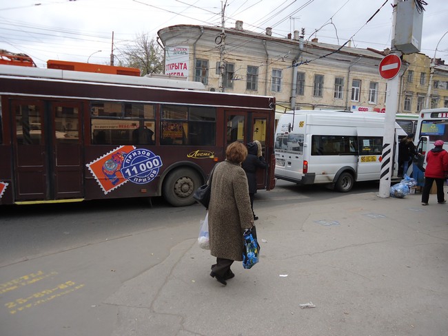 Троллейбусы, маршрутные такси и автобусы взяли за правило останавливаться на «зебре». Зачастую они так делают, потому что не могут проехать до остановки из-за уже стоящего там транспорта. В результате пешеходам приходится протискиваться в узкие щели между грязными бамперами. Прикрытые корпусом автобусов фигуры людей, как правило, не видны другим участникам дорожного движения, что повышает риск дорожно-транспортных происшествий.