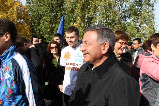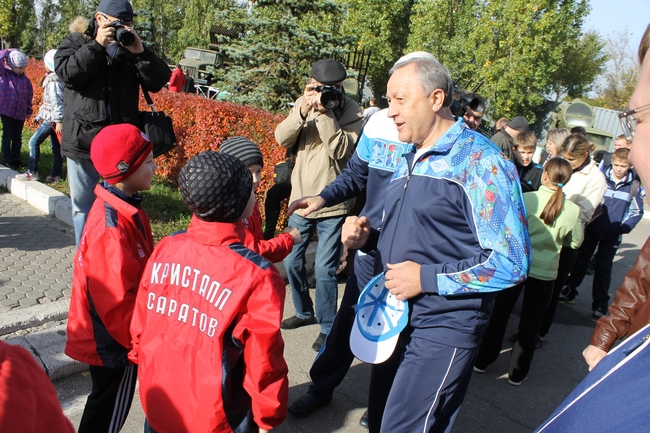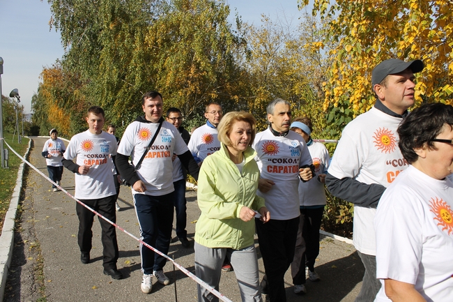 Спортивную часть мероприятия на Соколовой горе открыл VIP-забег, в котором дистанцию 500 метров преодолели губернатор Саратовской области Валерий Радаев, председатель областной думы Владимир Капкаев, вице-губернатор Денис Фадеев, министр молодежной политики, спорта и туризма региона Наиля Бриленок, и другие представители власти. Они первыми описали дугу вокруг монумента «Журавли». Столько же бежали журналисты и школьники. Остальные участники соревнований преодолели дистанцию в 1 км. Сразу после пробежки губернатор рассказал журналистам, что самое главное бегать «не ради рекорда, а ради здоровья».