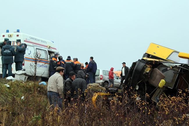 Как рассказал «Четвертой власти» руководитель отдела пропаганды УГИБДД Иван Курносов, около 6.45 примерно на 319-м километре трассы Сызрань-Саратов-Волгоград у села Еремеевка Саратовского района столкнулись автобус «Неоплан» и самосвал «МАЗ». В итоге оба транспортных средства опрокинулись в кювет.
