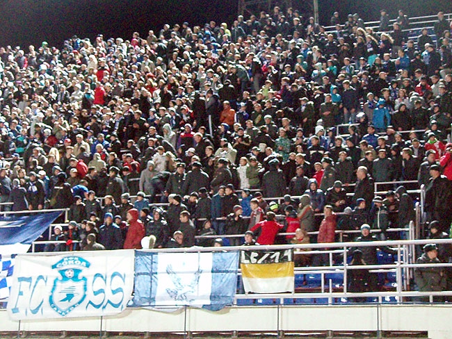 Места в гостевом секторе заняли семь-восемь сотен фанатов «Крыльев Советов» (Самара). По ходу первого тайма гости затеяли обмен нецензурными кричалками с переполненной фан-трибуной хозяев, не выполнив просьбу ПФК «Сокол».