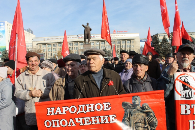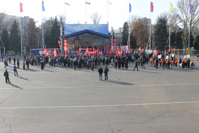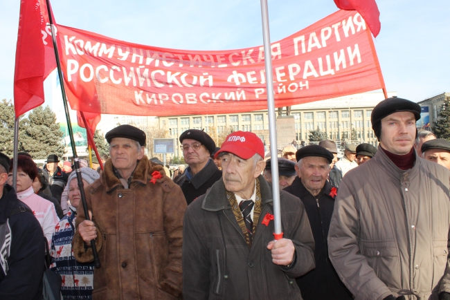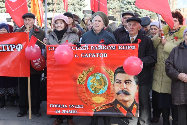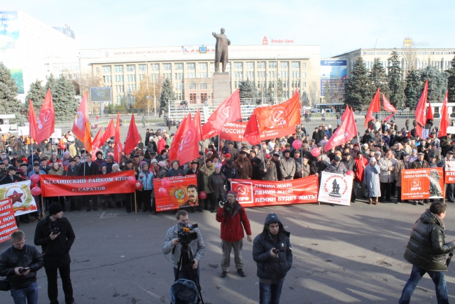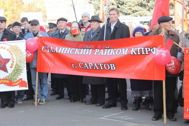 Сегодня в Саратове состоялось шествие и митинг, посвященные дню Великой Октябрьской революции. Организатором акции выступило региональное отделение КПРФ.