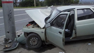 «Десятка» врезалась в столб. Госпитализированы двое