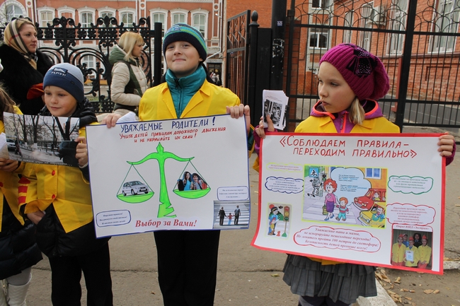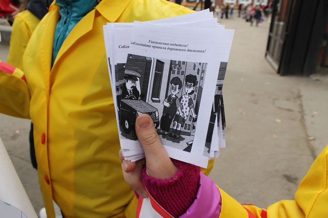 Помимо сотрудников ГИБДД, в акции принимали участие несколько школьников, которые стояли на тротуаре и раздавали прохожим листовки, призывающие соблюдать правила дорожного движения. Кроме того, у них были плакаты с похожими лозунгами.