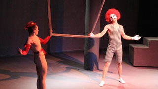 В спектакле только два персонажа, он и она, актер и актриса. Канву спектакля составляют взаимоотношения, конфликты, трагические развязки и комические эпизоды. Наибольшая «нагрузка» легла на исполнительниц роли «актрисы». Они демонстрировали свое мастерство в пантомиме, акробатике, пародии.
