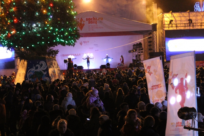 Только что завершился саратовский этап эстафеты олимпийского огня. 250 факелоносцев прошли сегодня дистанцию в 50 километров, и ровно по расписанию в 21.00 зажгли чашу олимпийского огня на Театральной площади Саратова.
