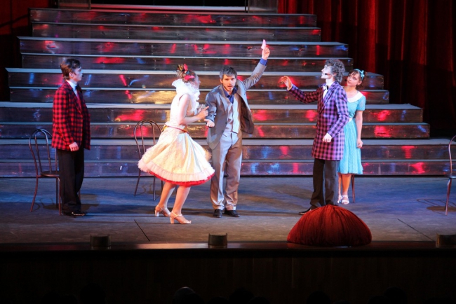 Студенческий спектакль поставил режиссер и хореограф Алексей Зыков. Начинающие артисты пели, танцевали, юморили, и их шутки вызывали ответную реакцию зрителей, попавших на предпремьерный показ.