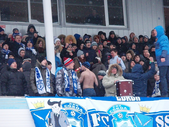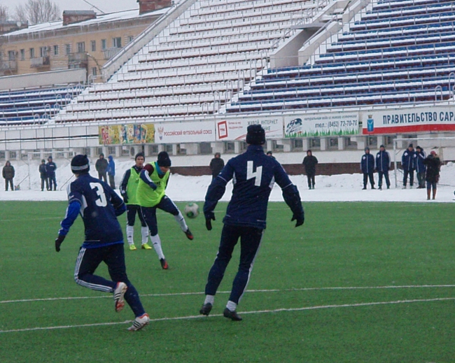 Под занавес почти месячной (с 14 января) тренировочной работы саратовцы сыграли с гостями из Самарской области - «Сызранью-2003». Матч проходил в непростых погодных условиях - минус десять, ветер, снег. Однако это не отпугнуло три сотни верных любителей футбола, которые весь матч громогласно поддерживали команду. После гола они запалили файер, во втором тайме несколько особо отчаянных фанов оголили торсы.